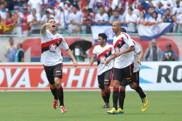 O Vitória não tomou conhecimento do maior rival e atropelou o Bahia no primeiro jogo da decisão do Baianão 2013. Em plena Arena Fonte Nova, que tinha muitos dos lugares reservados aos tricolores vazios, o Leão emplacou uma goleada de 7 a 3 e colocou a mão na taça, levando uma larga vantagem para a partida decisiva. Dinei passeou em campo e marcou quatro vezes. Gabriel Paulista, Fabrício e Maxi fizeram os demais gols rubro-negros. Fernandão fez dois e Adriano fechou a conta tricolor. A vantagem que já era do Vitória ficou quase intransponível para o Esquadrão e o time de Joel Santana vai precisar vencer por pelo menos cinco gols de diferença para impedir a festa rubro-negra em casa. O segundo e decisivo jogo da final acontece no próximo domingo (19), no Barradão, com bola rolando a partir das 16h. (Correio da Bahia)